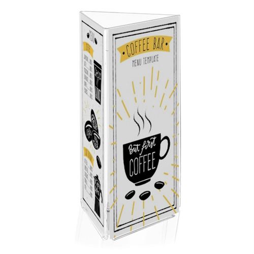 Stående tresidig Menyhållare gjord av 2 mm akryl av bästa kvalite, som ger ett kristallklart och professionellt utseende, passar perfekt till bord, med 3 sidor för visning av menyer och prislistor.