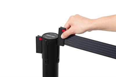 Det extremt långa 3 meters utdragbara bandet är längre än industristandarden på 2,3 meter. Det innebär att med våra stolpar behöver du köpa 45 % färre stolpar än normalt.