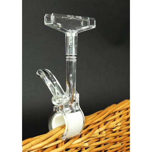 Universal klämma monterad med 70mm klar T-hållare som passar till alla SKILTEX plastramar.