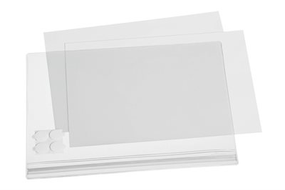 Monteringen sker med hjälp av de fyra medföljande självhäftande kuddarna som kan tas bort utan märken och gör det möjligt att placera den kristallklara plastfickan exakt där du vill.
