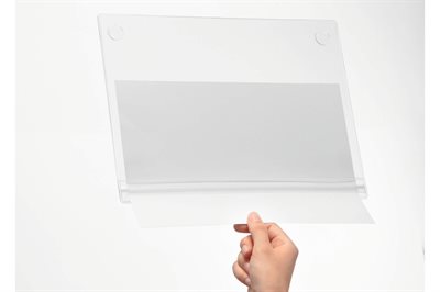 Informationsfickan är idealisk för visning av information i utomhusmiljöer och i fuktiga inomhusområden, som till exempel trädgårdscenter, bastur och simhallar, där skyltar och information kan utsättas för vattenstänk.