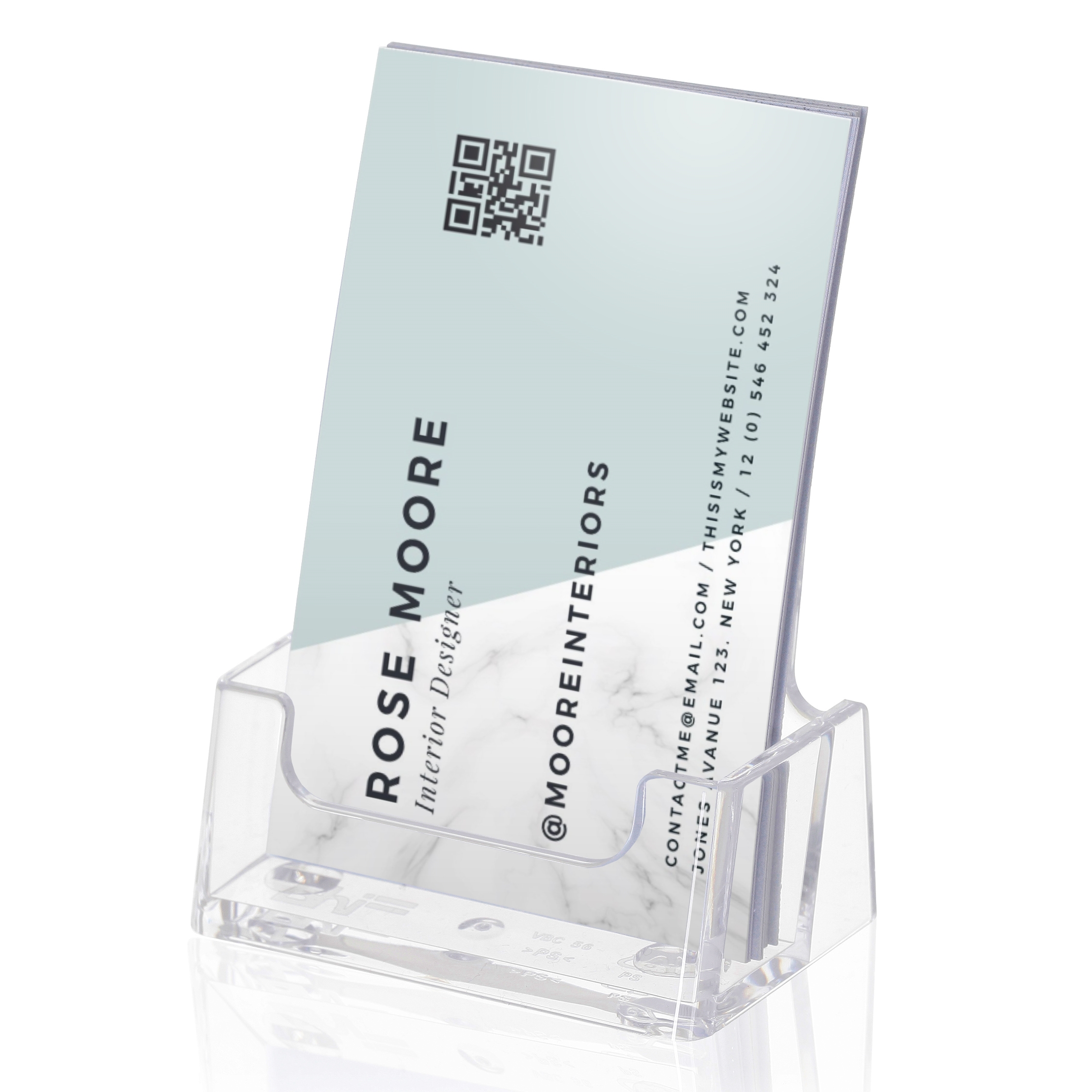 1 fack visitkortsställ i snygg design av transparent akrylplast. Snabb fraktfri leverans!