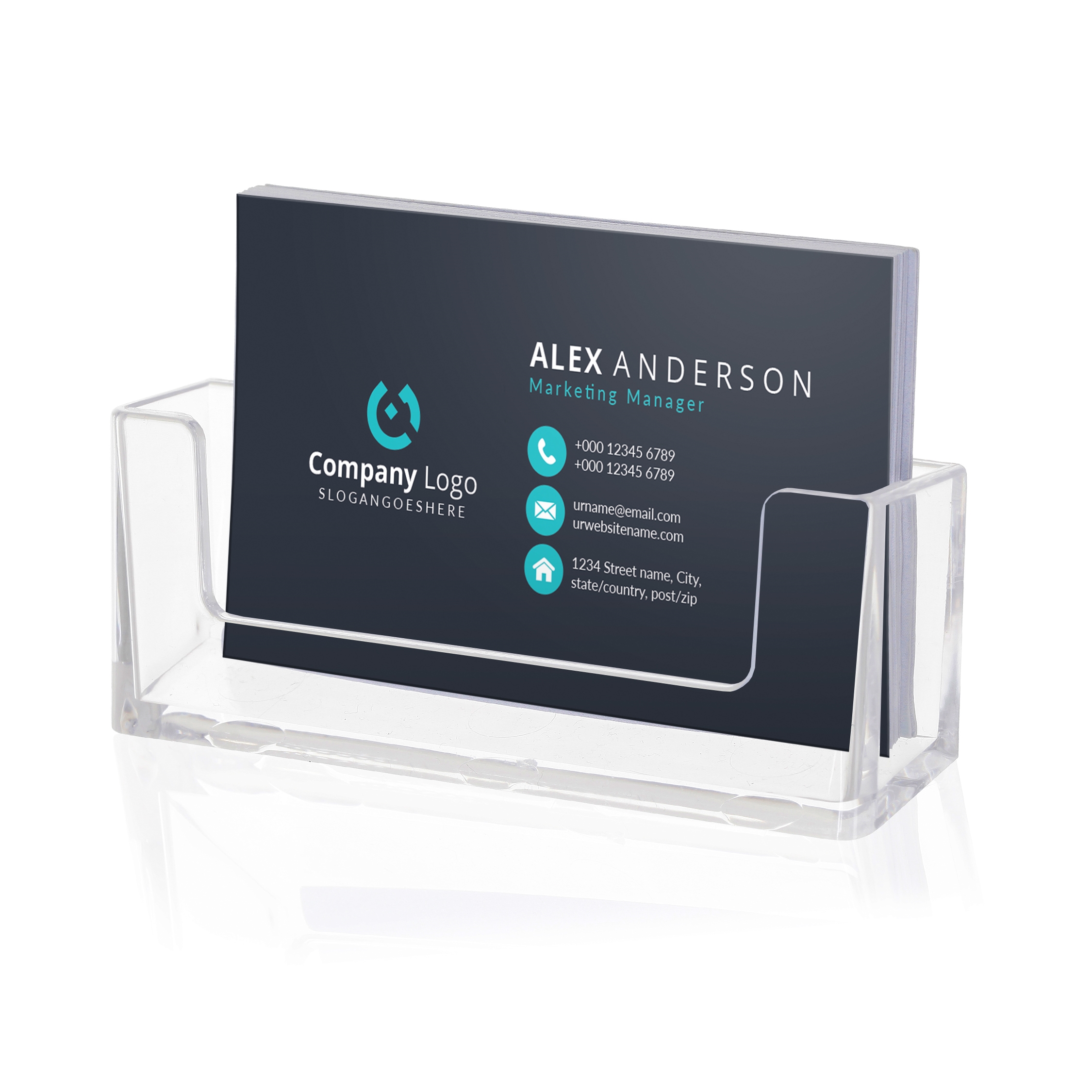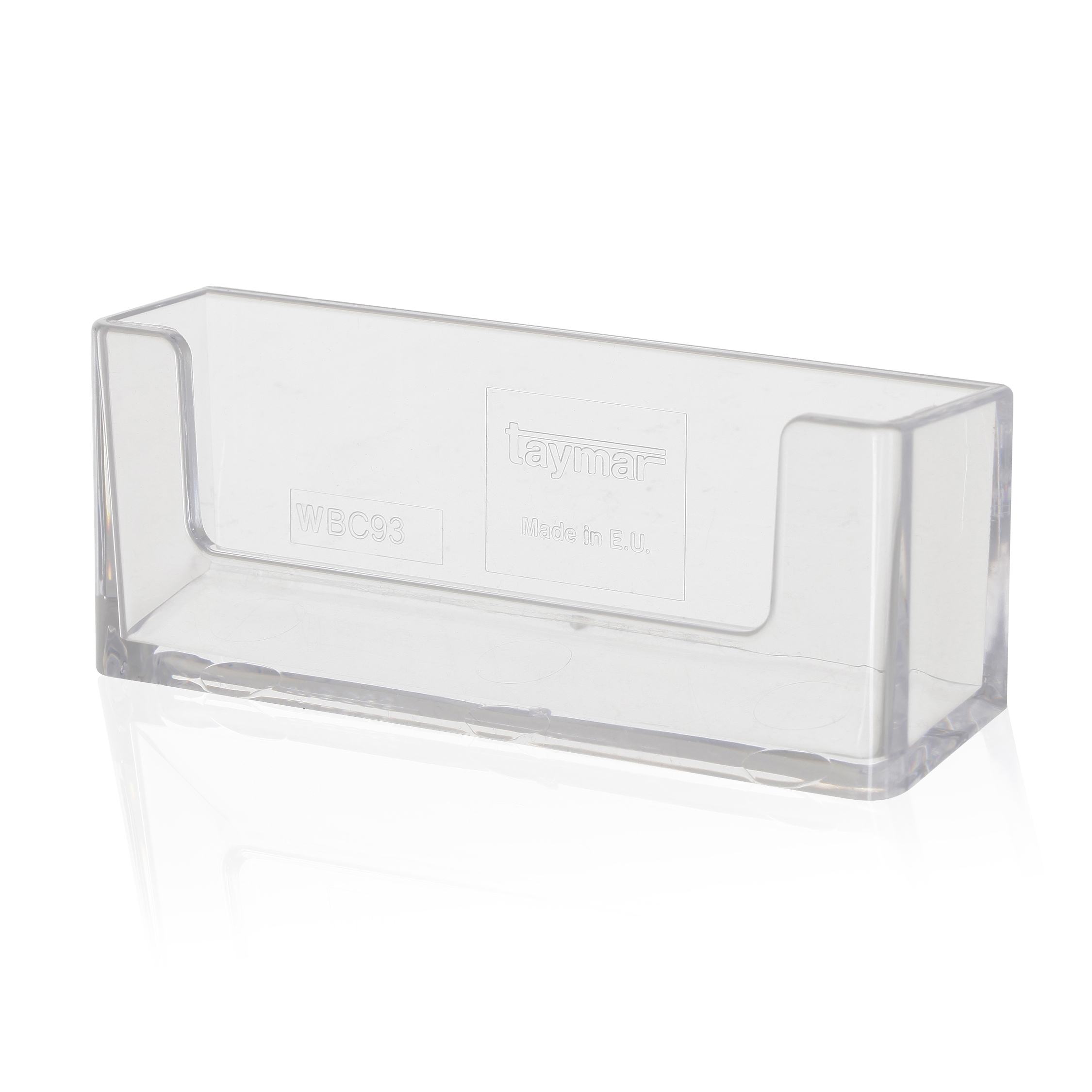 Visitkortshållare för montering på vägg. Av transparent akrylplast.
